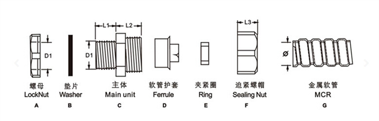 加厚型鋅合金鍍鋅或鍍硬鉻,外形美觀,結構緊密,強度高;軟管護套設計與軟管相扣接緊之設計,配合迫緊頭裝配省時便利,抗拉力特強;可防水、防塵、抗鹽、耐酸堿及一般溶劑;除以下標準規格以外,可另按需求任意變動大小及螺紋標準。