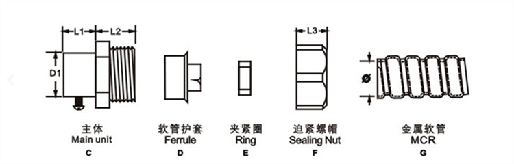 加厚型鋅合金鍍鋅或鍍硬鉻,外形美觀,結構緊密,強度高;軟管護套設計與軟管相扣接緊之設計,配合迫緊頭裝配省時便利,抗拉力特強;可防水、防塵、抗鹽、耐酸堿及一般溶劑;除以下標準規格以外,可另按需求任意變動大小及螺紋標準。